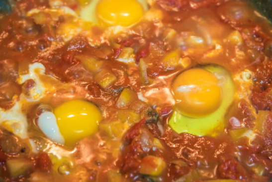 Shakshuka is a hearty, intense, and spicy stew that brings the flavors of North Africa and the Middle East directly to your table. With eggs poached in a spiced pepper and tomato sauce, this recipe is not only easy to prepare but also utterly delicious. For breakfast, brunch, or even dinner, Shakshuka is a one-pan wonder that’s best served with crusty bread. Let’s get cooking!