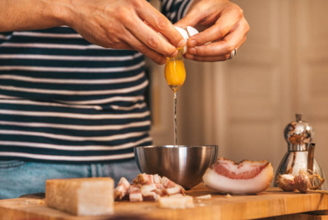 - The heat from the pasta and pancetta will cook the eggs, forming a rich, creamy sauce. Be careful not to scramble the eggs — keep the pasta tossing for a smooth texture.