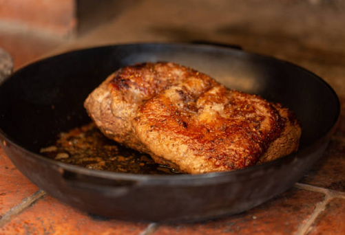 - Heat a cast iron skillet over high heat with a bit of oil.