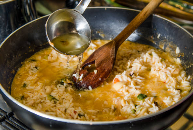 Begin adding the warm broth one ladleful at a time, stirring frequently. Wait for the liquid to absorb before adding more. Continue adding the broth and stirring for about 20–25 minutes, or until the rice is tender but still has a slight bite in the center.
