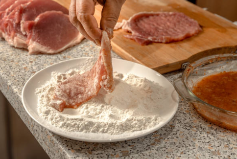 Bread the Cutlets: Dredge each pork chop first in flour, then the egg mixture, and finally in the breadcrumb mixture. Press gently to help the coating stick.